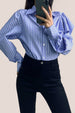 This shirt is the perfect staple to have in your wardrobe as it can be worn as workwear or casual wear. This top is covered in white vertical stripes. features long sleeves (with buttoned cuffs) and a collared neckline. Relaxed. straight-cut bodice has a full button placket of tonal buttons and an exaggerated bow at the front that adds a sweet finishing touch.