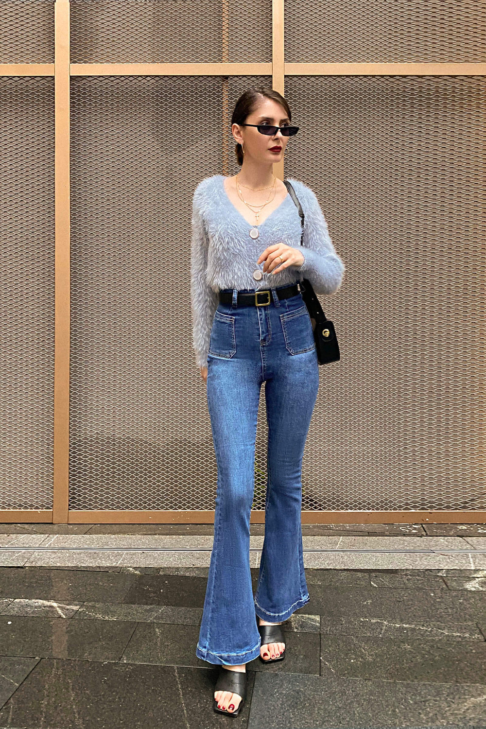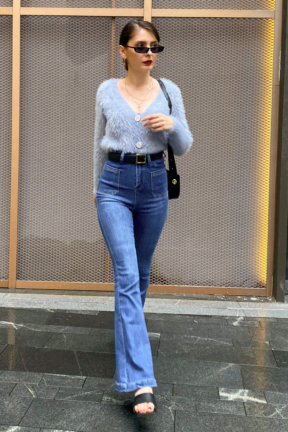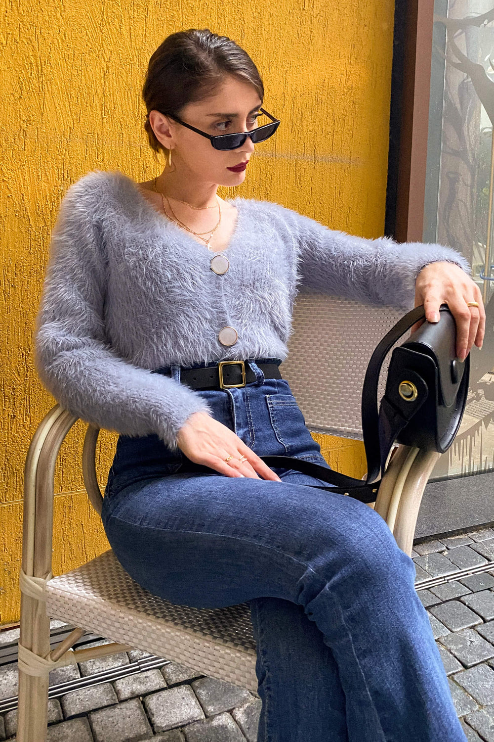 This soft and fuzzy number will get rid of the winter blues without a doubt. It features a V-neckline. long sleeves. two buttons at the front and a cropped length. Pair with some high-waisted denim jeans. boots and a baguette bag for a casual-chic day or night look!