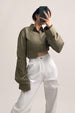 This cropped shirt is perfect for any occasion. Featuring a cotton woven material with a classic collar. a button placket. a patch pocket detail and a cropped length. Style this with high-waisted bottoms and sandals to complete the look.