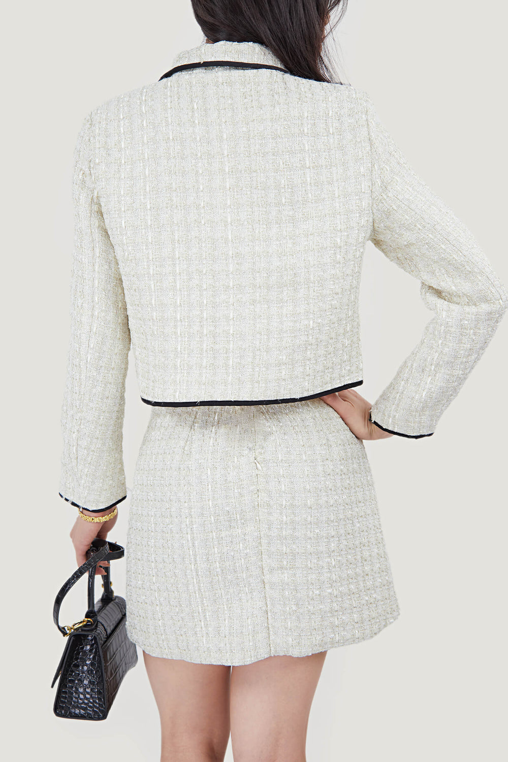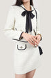 Give your wardrobe that instant refresh with this set.Textured and midwight fabric. with slightly shiny details throughout. shapes this chic blazer that has long sleeves. a collared neckline . and a straight hem.From the white collar to the charming bow detail. it's a timeless yet feminine style to add to your capsule wardrobe. The matching mini skirt has a high waist and an A-line design.