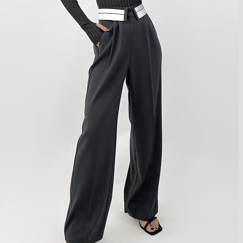 Featuring a contrast folded over waist design. these pants are shaped to a relaxed wide leg silhouette with pleats down the front. functional pockets and zip fly with hook closure to the front. They're incredibly flattering and easy to dress up or down depending on the vibe. Wear it with the matching top and pumps for a desk-to-dinner look!