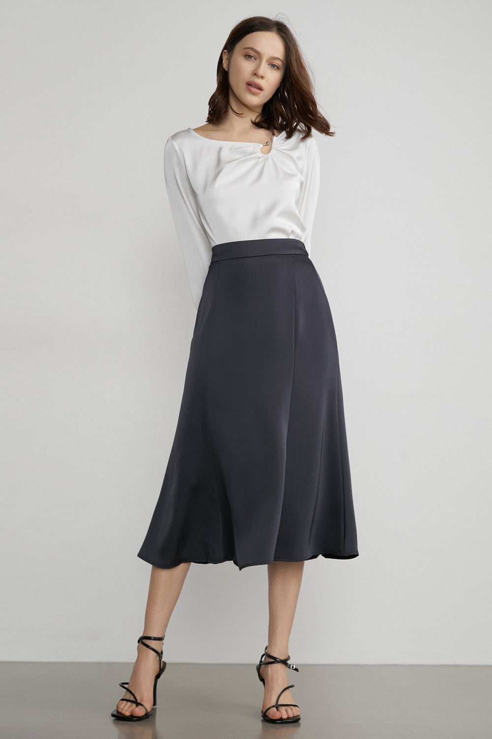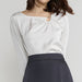 This slip blouse is shaped with a sweetheart neckline with cut-out design and long sleeves with buttons at cuffs. Paired with high-waisted jeans. suit pants for effortless work wear.