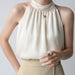 This summer shirt top. Crafted from woven chiffon. it's cut with a halterneck neckline and sleeveless bodice. Full of fashion. it also effectively enhances the sophistication of your commuting outfit.