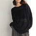 This oversized sweater features a round neckline. long sleeves. drop shoulders. and a sit hem. Made with breathable and thin fabric. Available in black. dark orange. and grey.