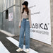 These high-waisted wide-leg jeans offer a relaxed straight silhouette in a soft light blue wash. Made from 100% cotton with no stretch. they deliver a structured vintage feel while remaining breathable and comfortable. Perfect for casual styling with crop tops. oversized shirts. or tucked-in knits.