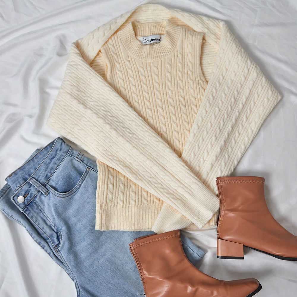 Stylish cable knit shapes this shrug cardigan set that has a long sleeves with ribbed cuffs and cropped length. The matching vest has a mock neck and ribbed edge. Wear these together for a coordinating look or layer with your other favorite pieces!