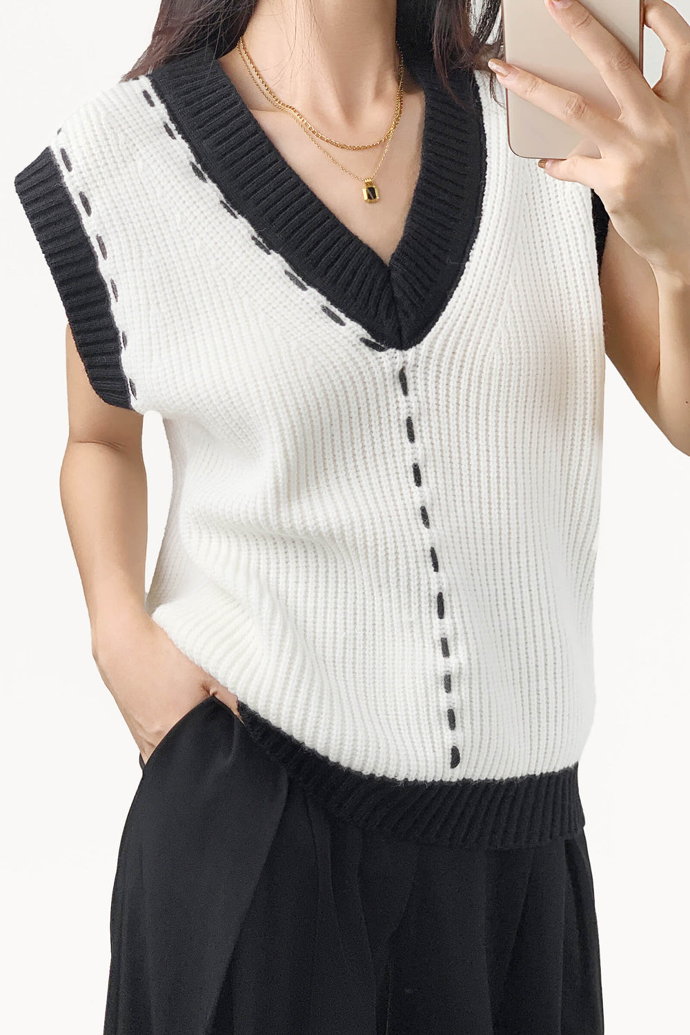 Don't sweat it. This sweater vest is made from ribbed knit and features a color-block design. V neckline. contrast stitching. and a loose fit. Great for styling over a basic t-shirt.