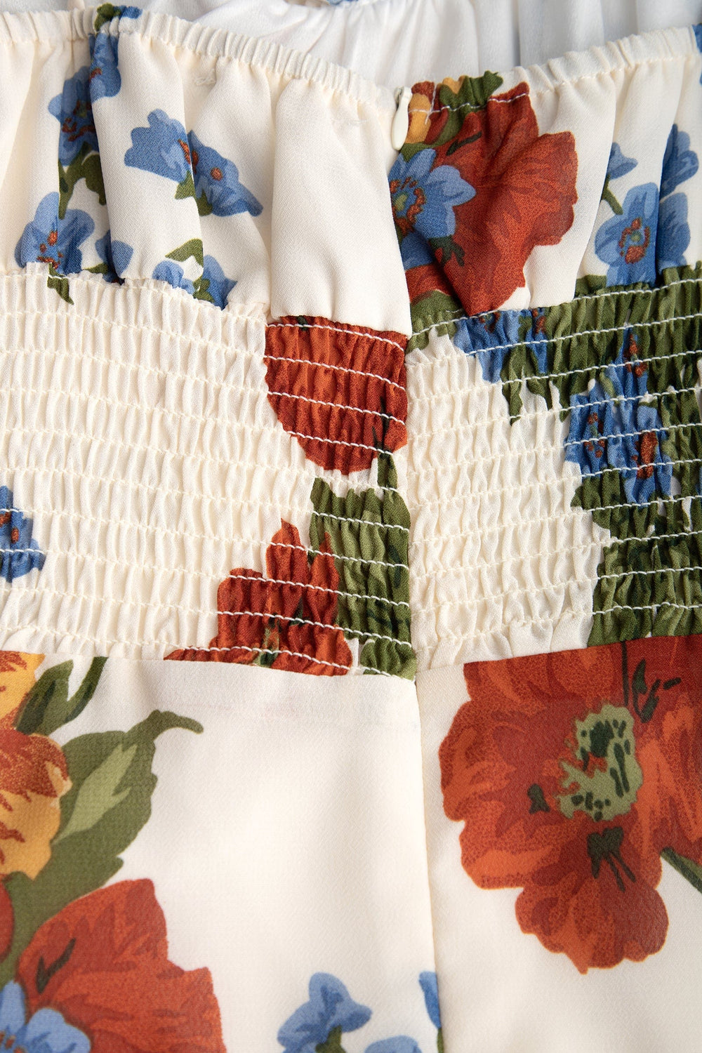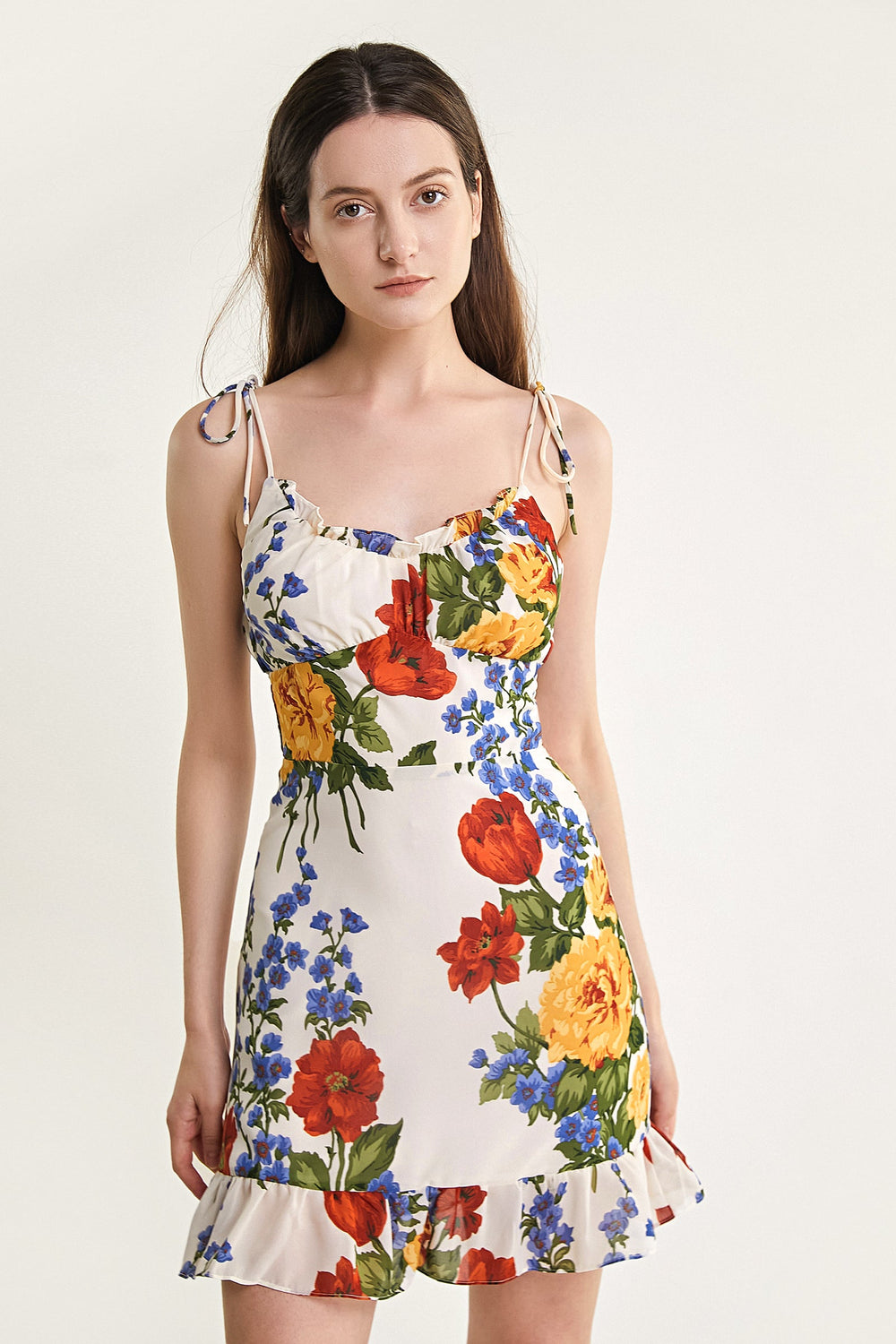 This dress is a must-have for the new season. Featuring a vivid floral print with a ruffle-trimmed V-neckline. thin tying straps. and an A-line skirt with a ruffled hem. Smocking at back for better fit. Hidden back zip fastening. Pair with slip on sandals and hoops for a next-level finish.