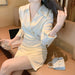 Get that show-stopping look with this shirt dress. Featuring a blue hue plaid material with a button front design. short puff sleeves. and pleat detailing at the fitted waist. Team it with clear heels and a mini bag for a simple yet chic look.