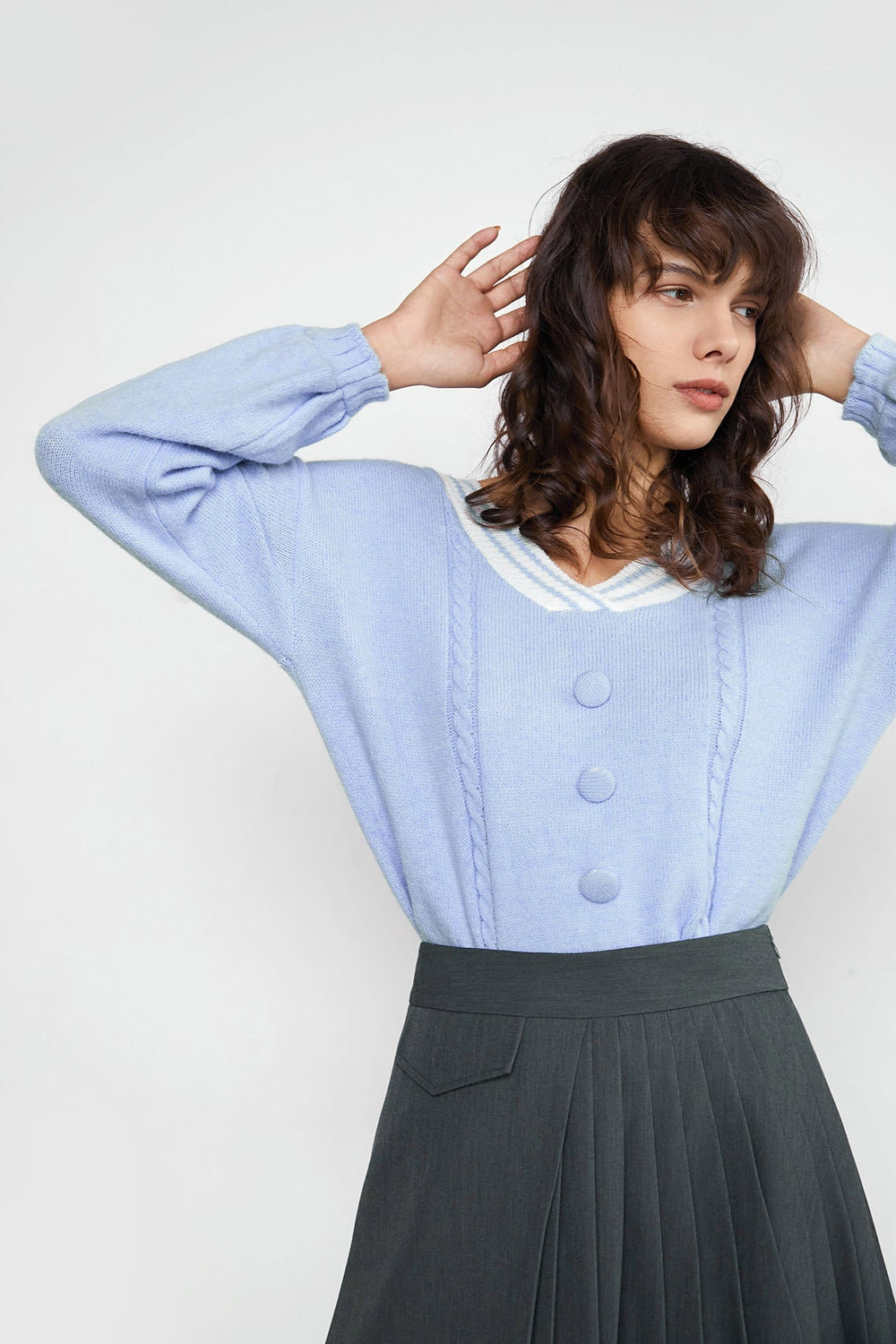 For a pop color! This adorable cardigan features lovely white v-neckline. drop shoulders. knitted rib pattern. a cropped fit. and a front button detailing. Made of polyester. acrylic. and spandex.