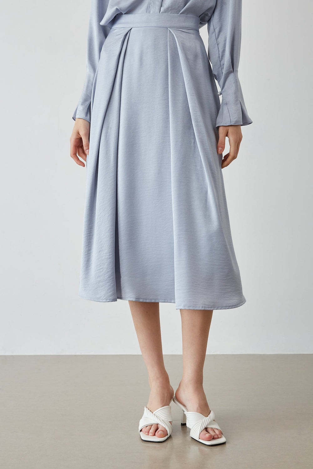 This midi skirt features high waist. fitted silhouette. and frilly ham. Made of 100% quality polyester for a breezy fit. Pair with the Keren Light Blue Puff Sleeve Shirt for an elegant look!