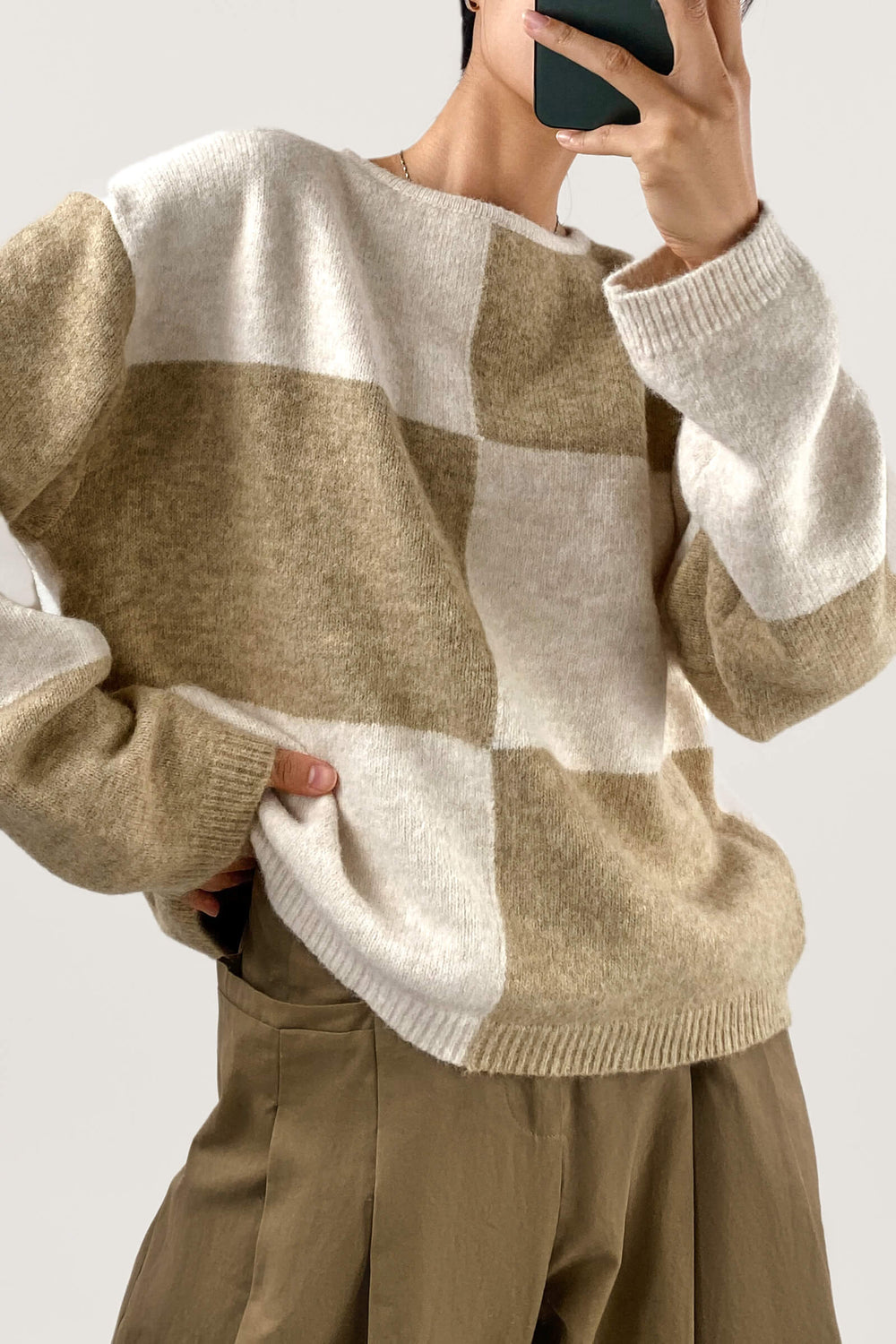 We're always down for the cute and cuddly vibes of the Cozy Crew Neck Plaid Sweater! Soft and fuzzy knit. long sleeves (with drop shoulders and ribbed cuffs) that frame a relaxed-fit bodice with a rounded neckline.