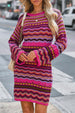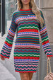 Girl. tell us all about how much you love this sweater dress! We sure do! That colorful stripe print is so chic and fun! This sweater dress is going to look so good this winter with boots and maybe even a wide brim hat. You know. if you want some extra drama! This sweater dress features long sleeves. a round neckline. and a gorgeous striped print.