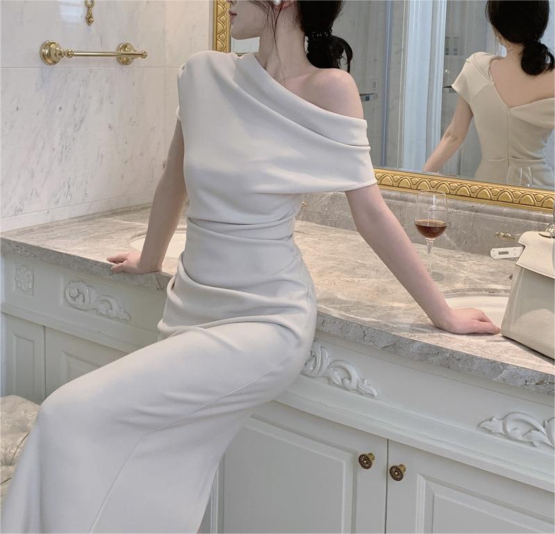 Earn yourself some serious style points in this dreamy dress. Lightweight stretch-woven fabric shapes a cowl neckline and a darted bodice. supported by adjustable spaghetti straps. Relaxed silhouette is accented with ruching at the side that cinches with a drawstring tie. Hidden back zip fastening. Team with strappy heels .