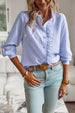 You and this blouse are going to create a beautiful romantic history together! The ruffles are just so cute and we are obsessing over the textured detailing! This blouse is going to look fabulous with nice pants or a skirt! This blouse features long sleeves. a high neckline. ruffles. and textured detailing.