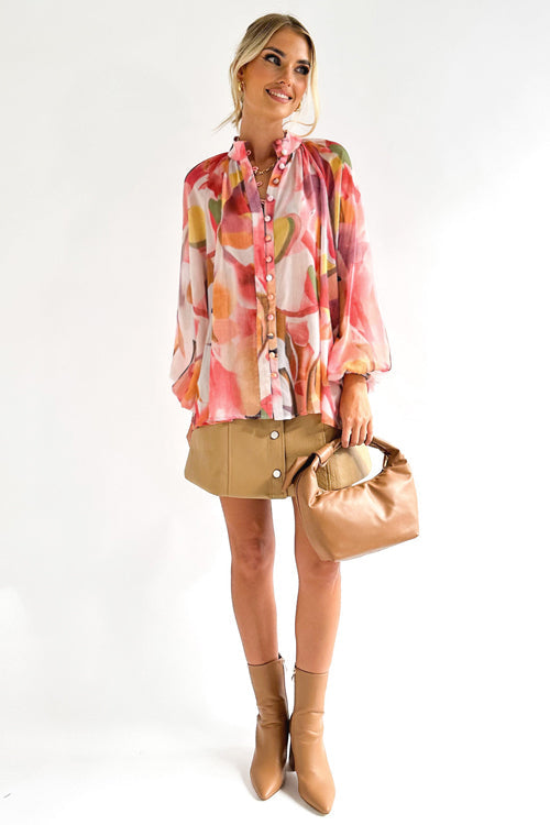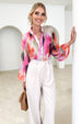 We certainly hope you find this blouse before it's gone! That print and those colors are perfection together! The fit is wonderful as well! The button down fit and bubble sleeves are so chic!