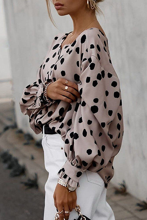 We're ready to book our tickets to sunnier days with the Mood Setter Polka Dot Print Button Down Top! Lightweight woven fabric. with a fun pattern throughout. shapes this perfect getaway top that has long balloon sleeves with elastic at the cuffs. a full button placket. and a round neckline. Relaxed-fit bodice completes the look.
