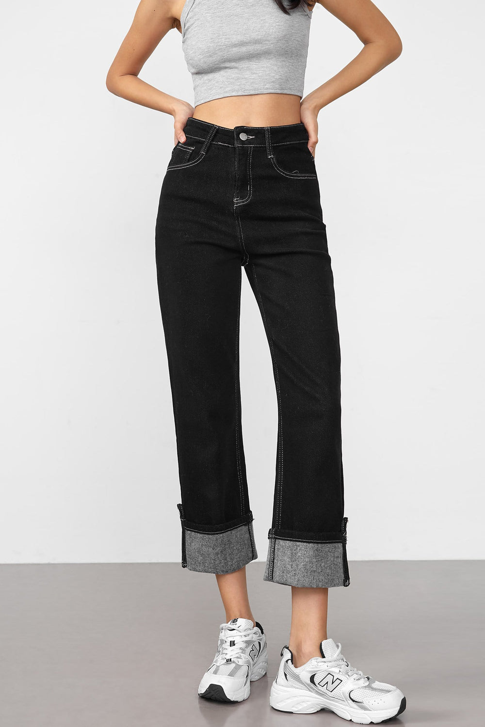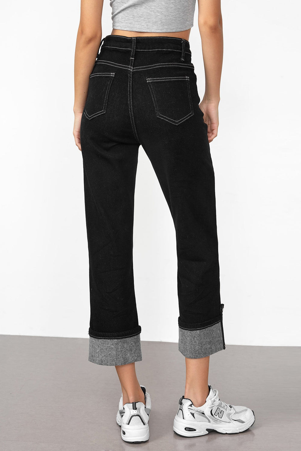 Keep warm yet in a slim fit. These boyfriend jeans feature a high waistline. brushed lining. and a straight leg fit. Made of cotton. polyester. and spandex. Available in black and navy.