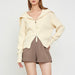 This cardigan features a contrast navy collar. a zip placket and long sleeves. Pair with pants in any styles for a casual and comfort outfit. Made of polyester and cotton.