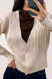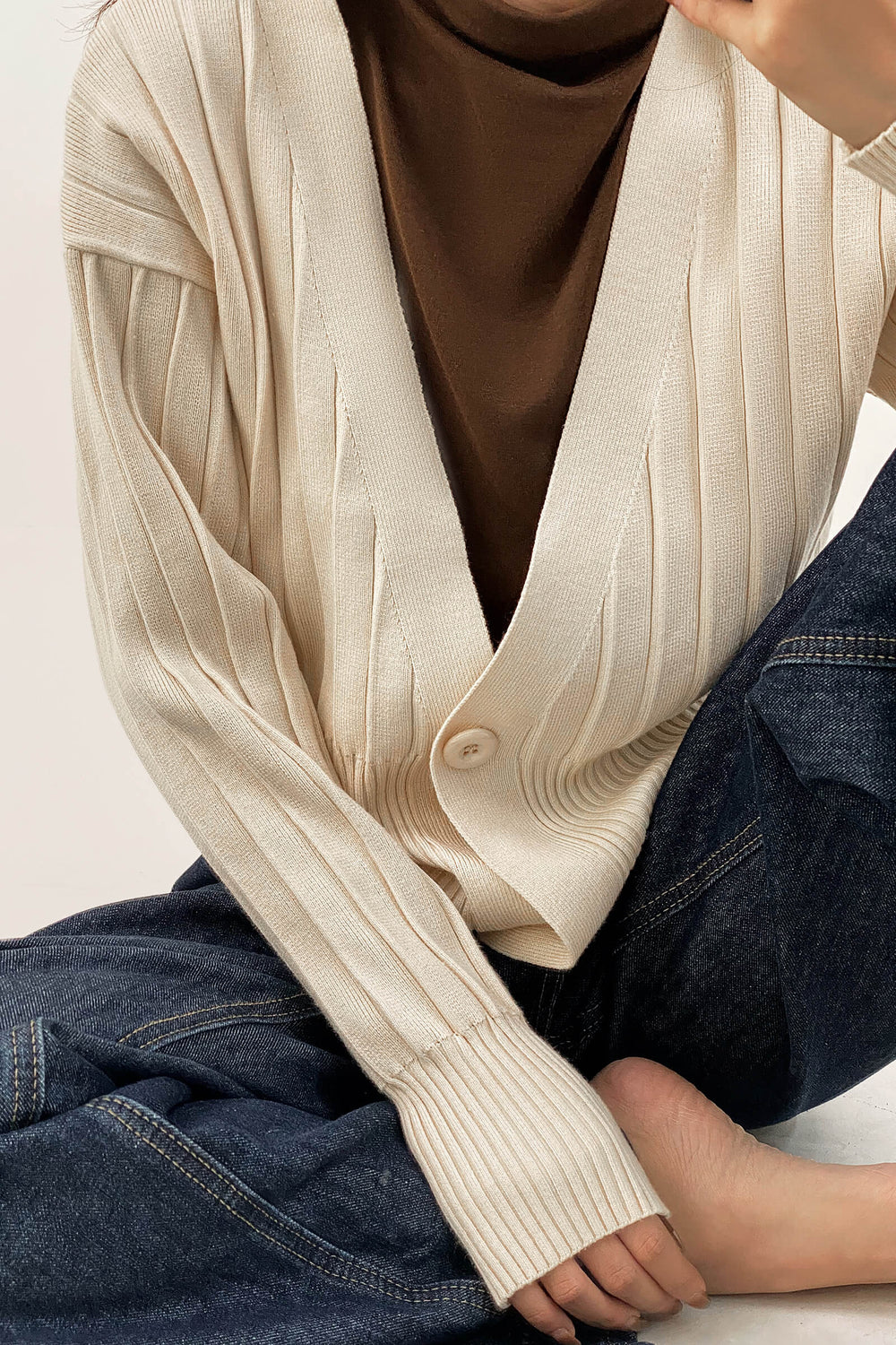 This cardigan is sure to give your look a cozy but chic finish. Featuring a comfy ribbed knit with a plunging V-neckline. dual front button closure. blouson sleeves with extended cuffs. and a slightly cropped length.