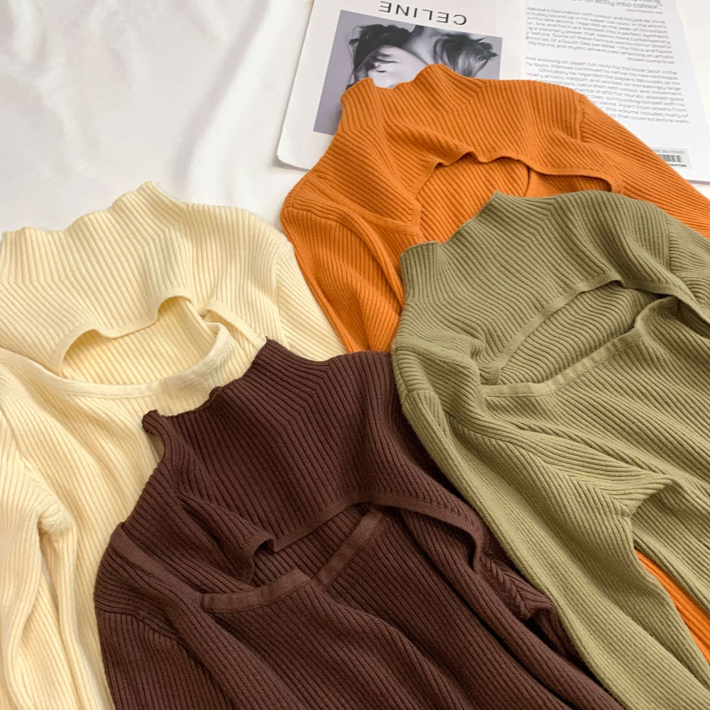 This sweater is sure to give your new season wardrobe a chic update. Featuring a cozy ribbed knit material with a mock neck. a front cut-out detail. long sleeves and a slim fit. Team it with some jeans and a shoulder bag to finish the look.