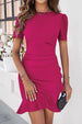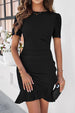 Elevate your wardrobe with our chic Perfectly Flirtatious Ruffled Short Sleeve Mini Dress. Perfect for the modern. fashion-forward woman. this dress combines sophistication with a touch of playful elegance. making it an ideal choice for both office wear and casual outings.