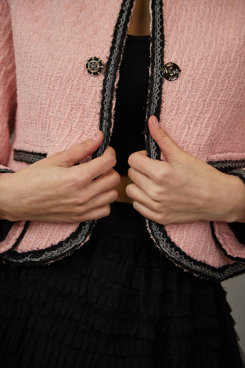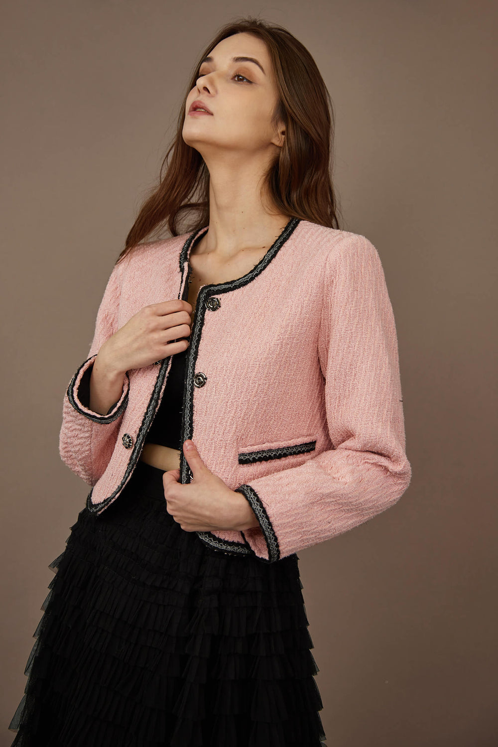 This chic vest features round neckline. a contrast trim.long sleeves and a single-breasted placket. Made of 100% Polyester.