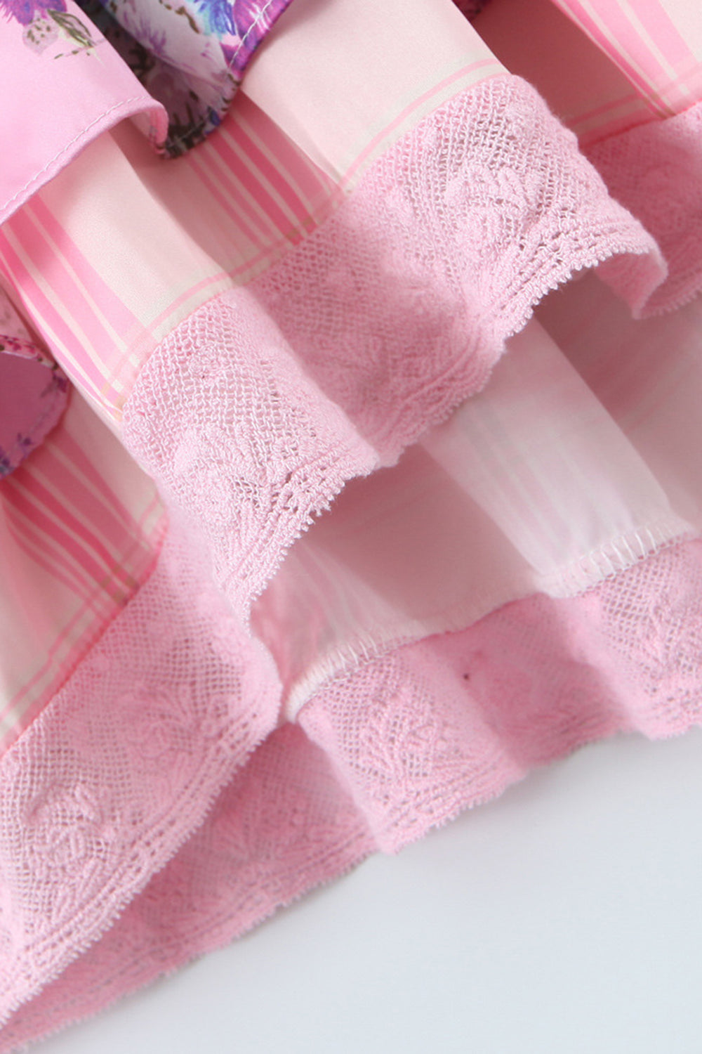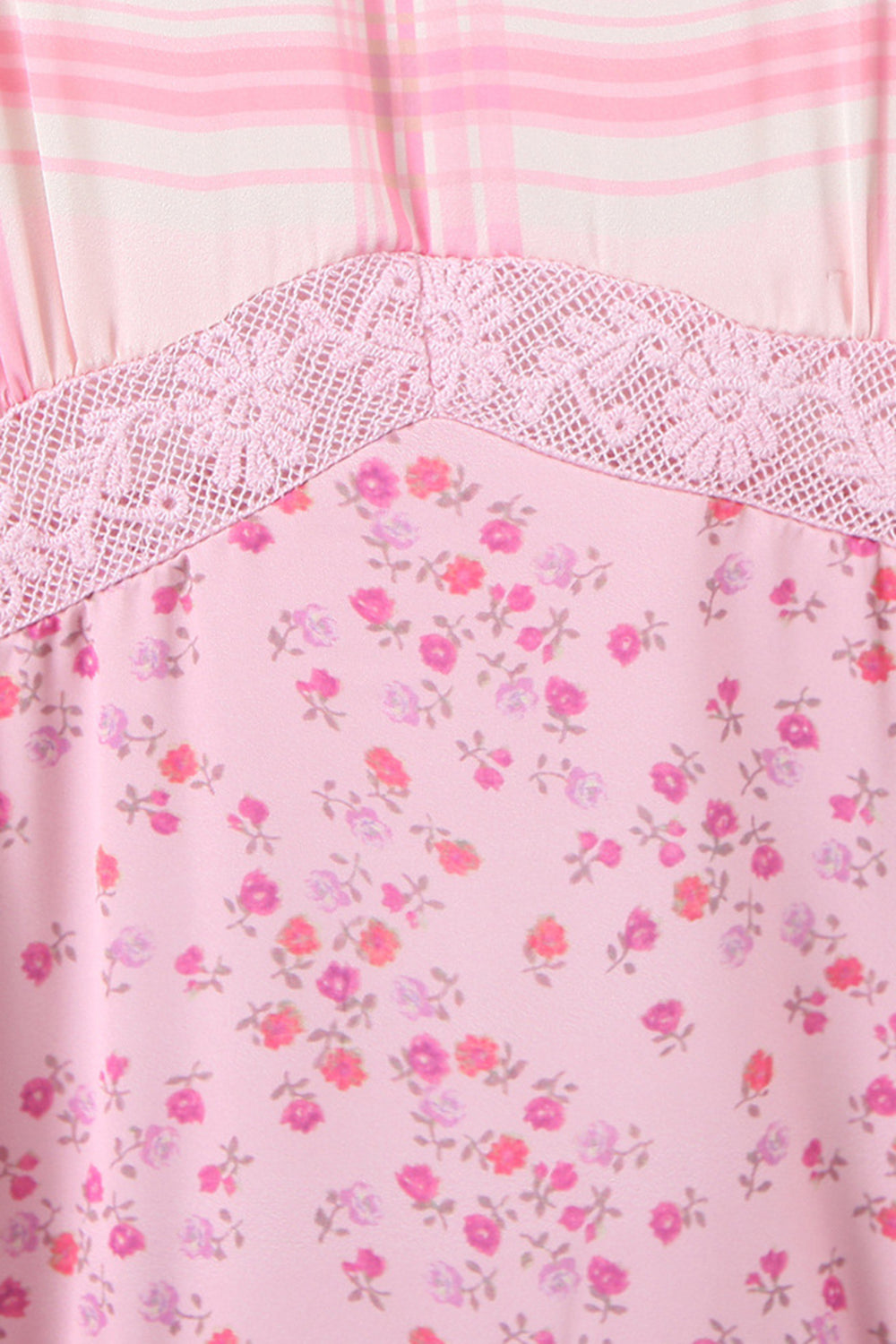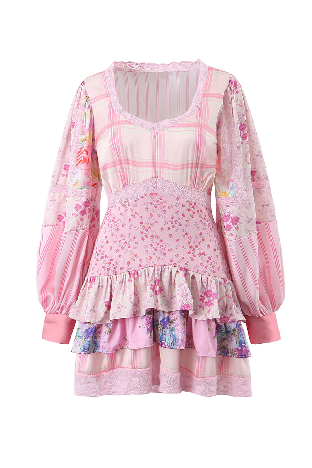 We don't know what it is. but I think we have a little bit of a crush on the Pink Floral Print Balloon Sleeve Tiered Mini Dress! Lightweight pleated woven fabric shapes this dress that has long fitted sleeves. which frame a bodice with a plunging sweetheart neckline.A high empire waist tops a twirly tiered skirt that ends at a mini hem