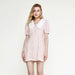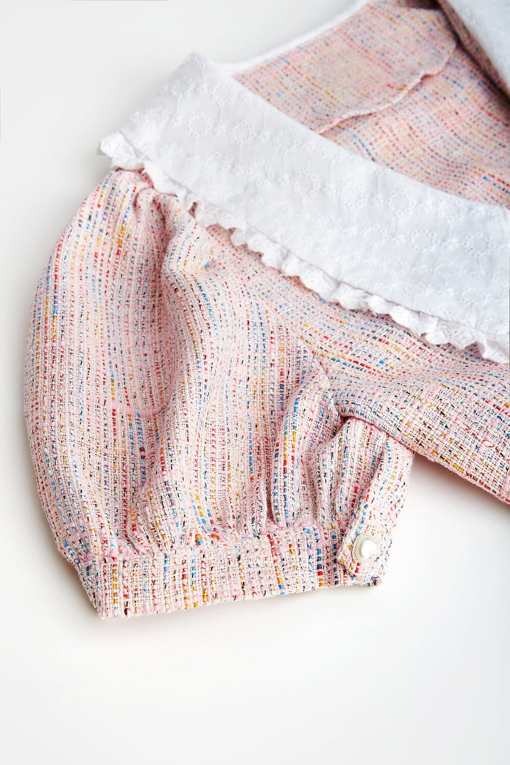 This is sure to be a new staple piece in your weekend wardrobe. Featuring a pink material with a ruffled statement collar. a buttoned bodice. puff sleeves. and a flattering fit. Just add your fave heeled mules and simple accessories to complete the look.