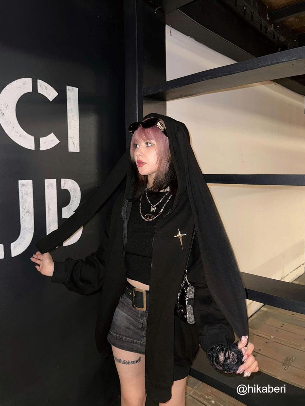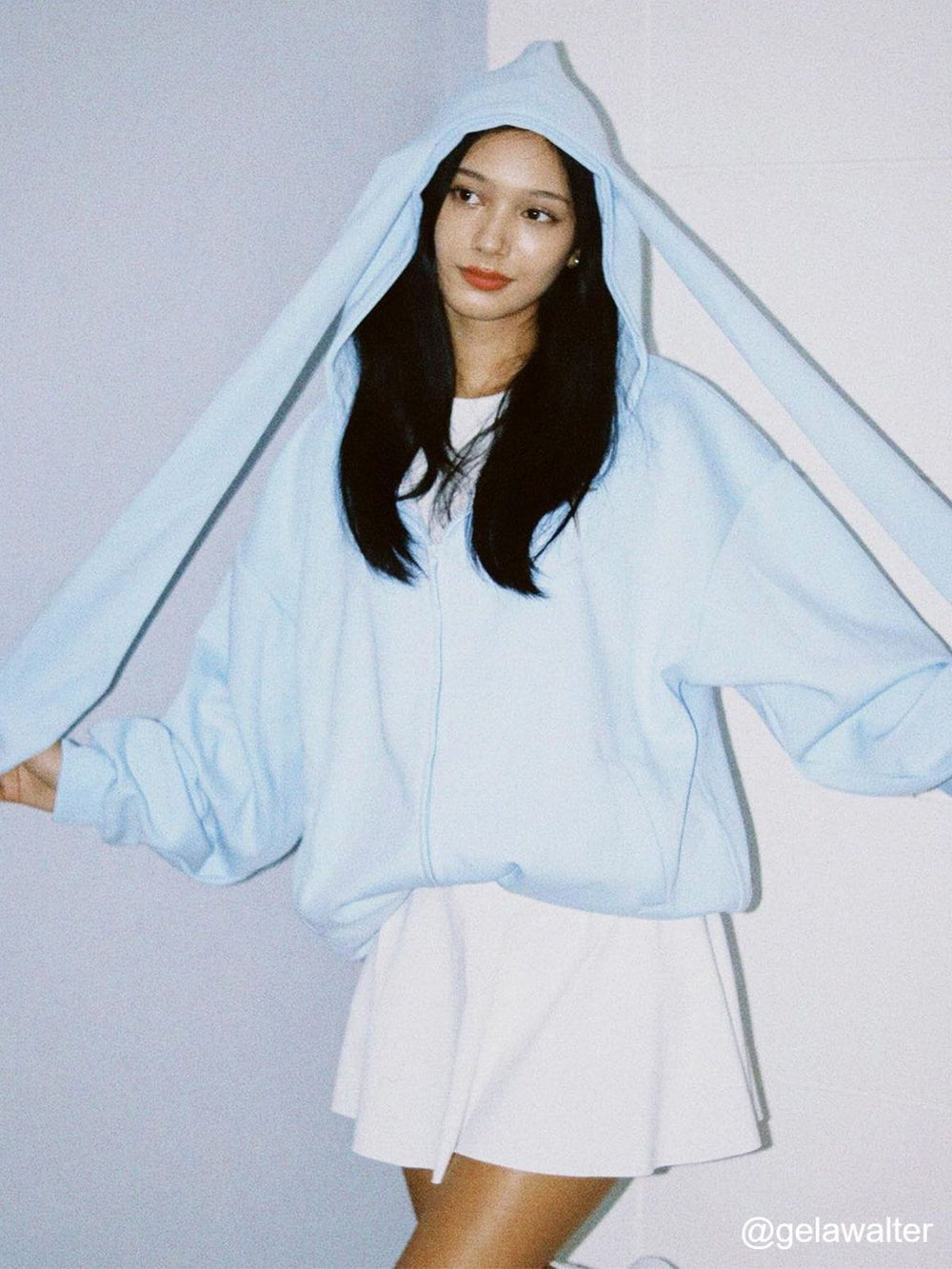 With super cute bunny ears and boasts a clean and elegant solid-color design. Adding a touch of luxury and sophistication. we've included a metallic four-pointed star embellishment on the front.
