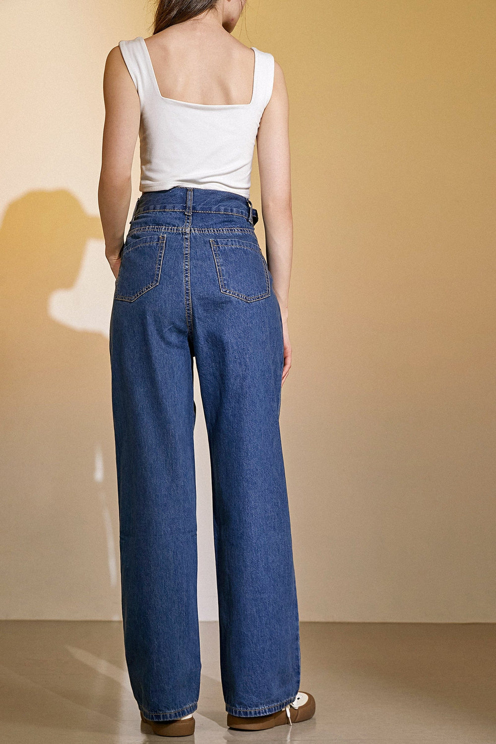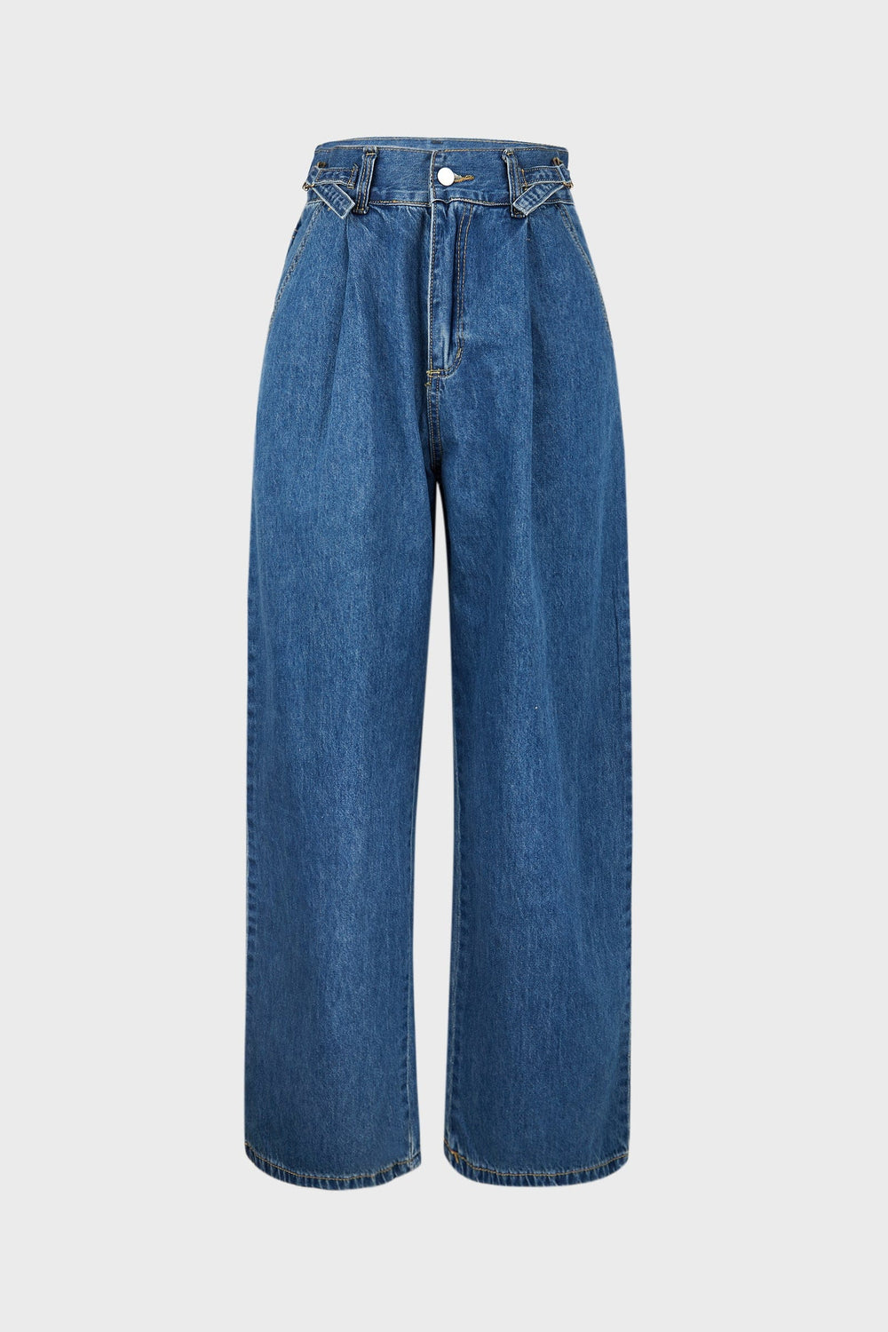 Step into street style with these wide leg jeans. Detailed with a high-waistline. adjustable buckle belts at the waistband to meet different needs and a a super long fit. Pair with t-shirts for an effortlessly casual outfit.