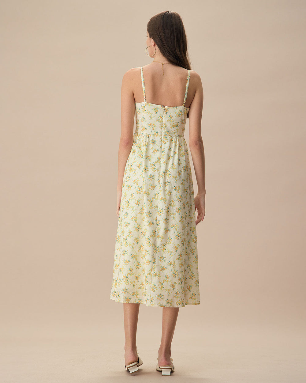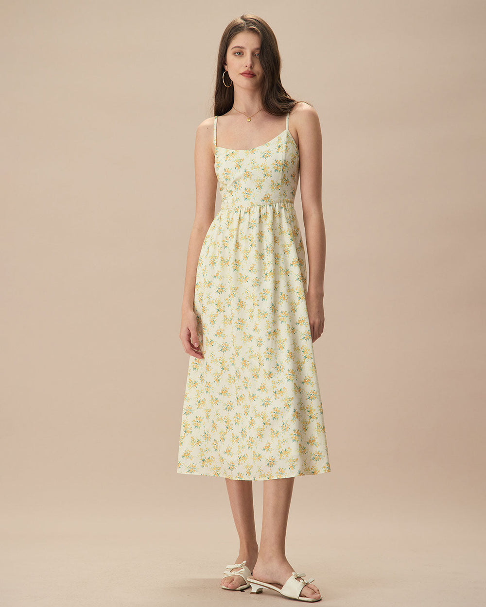 This delightful dress features a delicate ruched design that enhances its flattering fit. while the slip style ensures a graceful flow with every step. Adorned with a vibrant floral pattern. it's the perfect choice for garden parties. brunches. or any event where you want to radiate sunny cheer.