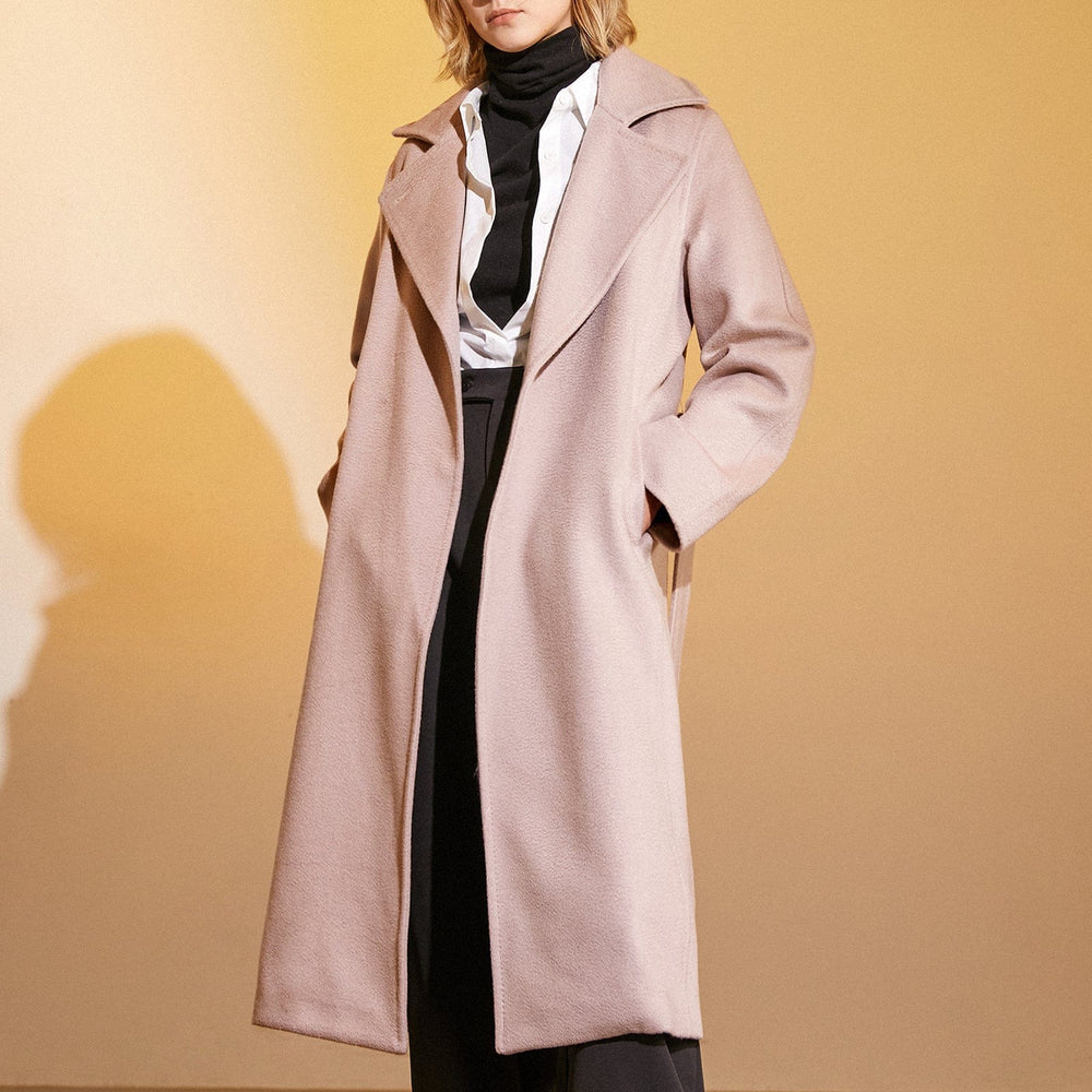 This chic winter coat is detailed with a notched collar and a tie belt at waist. Made of 100% wool for guaranteed quality and ultimate warmth.
