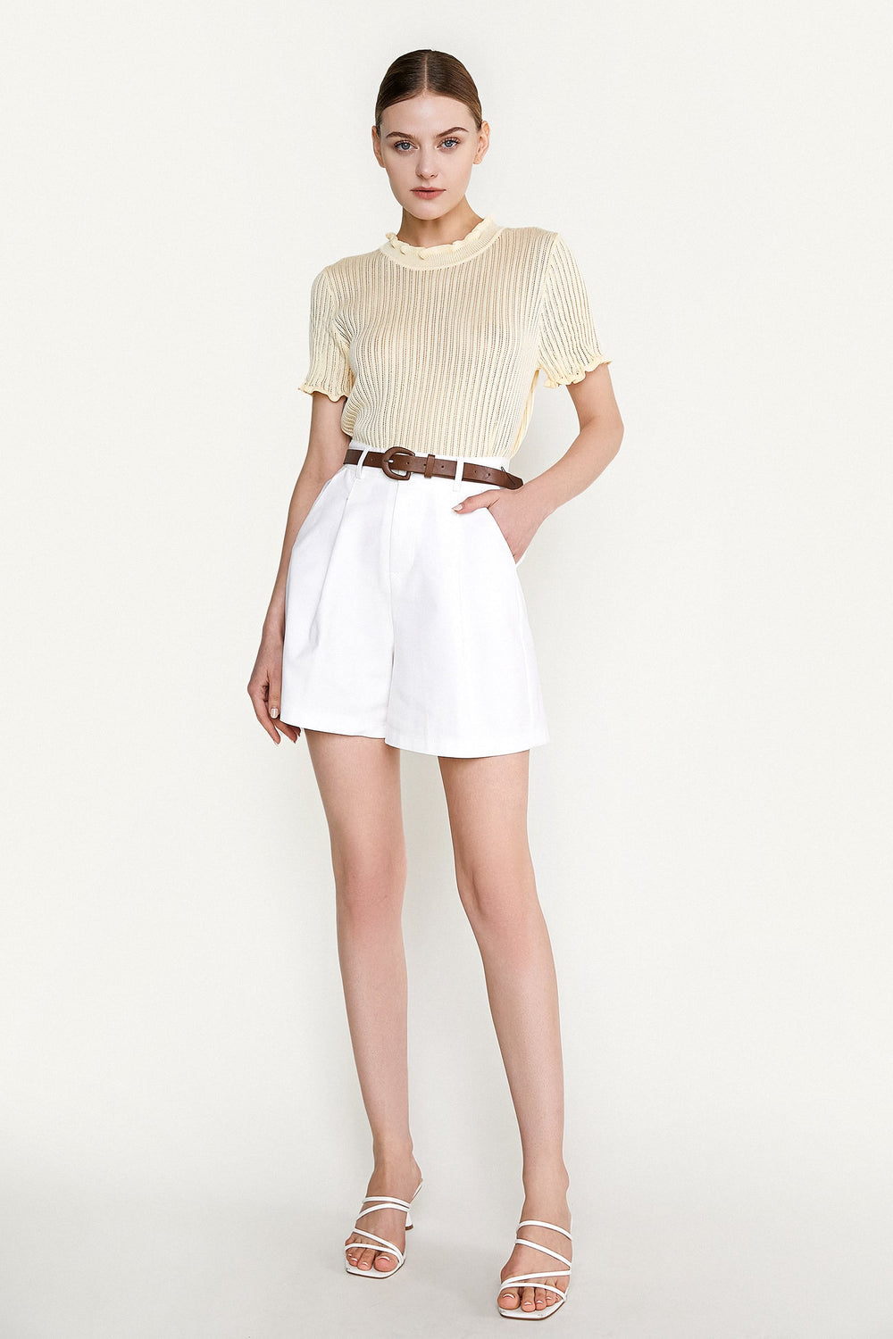These dreamy shorts are sure to earn you some style points. Featuring a white cotton-blend fabric with a tailored. high rise. long-line fit and a matching belt. Team these with a matching oversized blazer and complete the look with a nude pouch clutch and strappy heels.