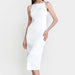 This dress is totally special occasion worthy. Pretty pleated details for a breezy yet put-together ensemble. Featuring an A-line silhouette. this midi has a straight neckline with faux pearl embellished straps. Hidden back zipper. Team with a mini handbag and strappy heels for a lust-worthy look.