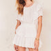 Step out and show the world just how cute you look in the white openwork ruffled hem layered mini dstyle tiered dress! Lightweight woven polyethylene featuring a round neckline. princess-stitched bodice and short sleeve frames.