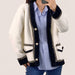 This cardigan is shaped with a V-neckline. front button closure. front pockets. long sleeves and contrast black trim. It is the perfect layer to wear over t-shirts. poplin tops and dresses.