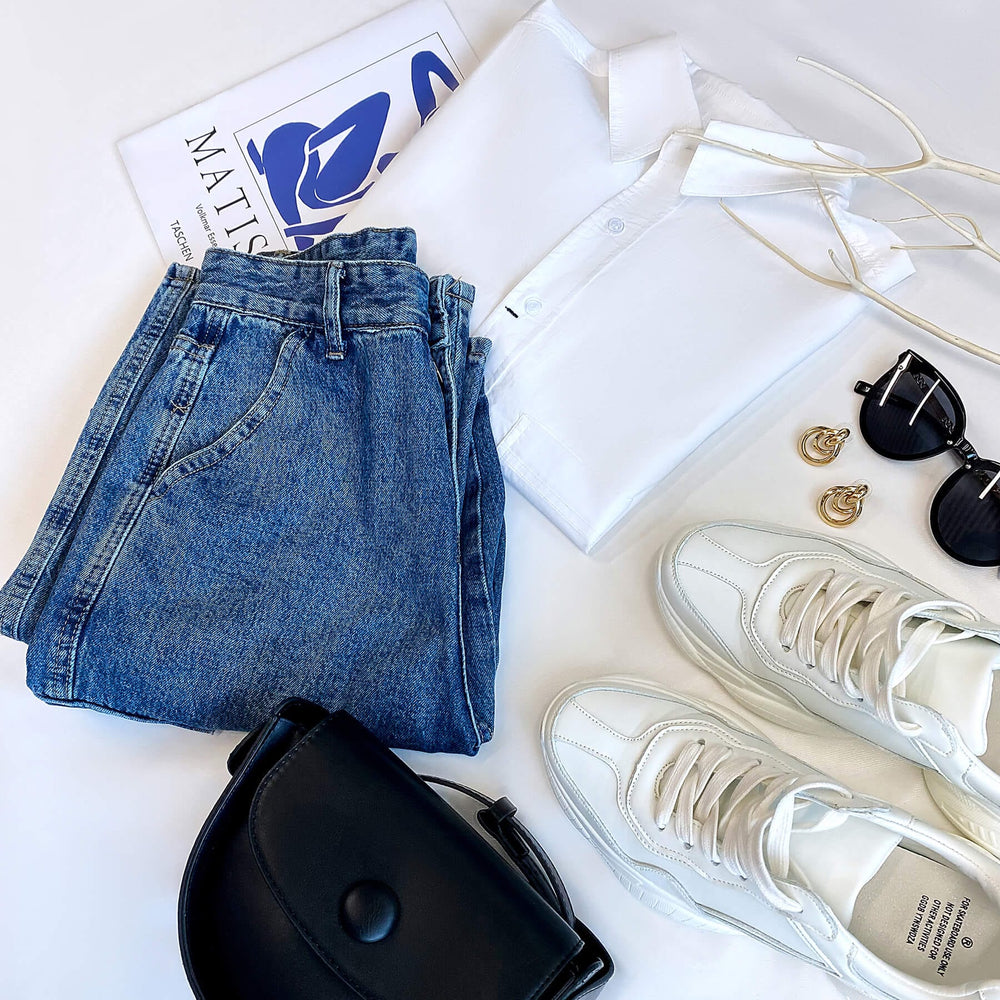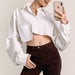 This cropped shirt is perfect for any occasion. Featuring a cotton woven material with a classic collar. a button placket. a patch pocket detail and a cropped length. Style this with high-waisted bottoms and sandals to complete the look.