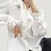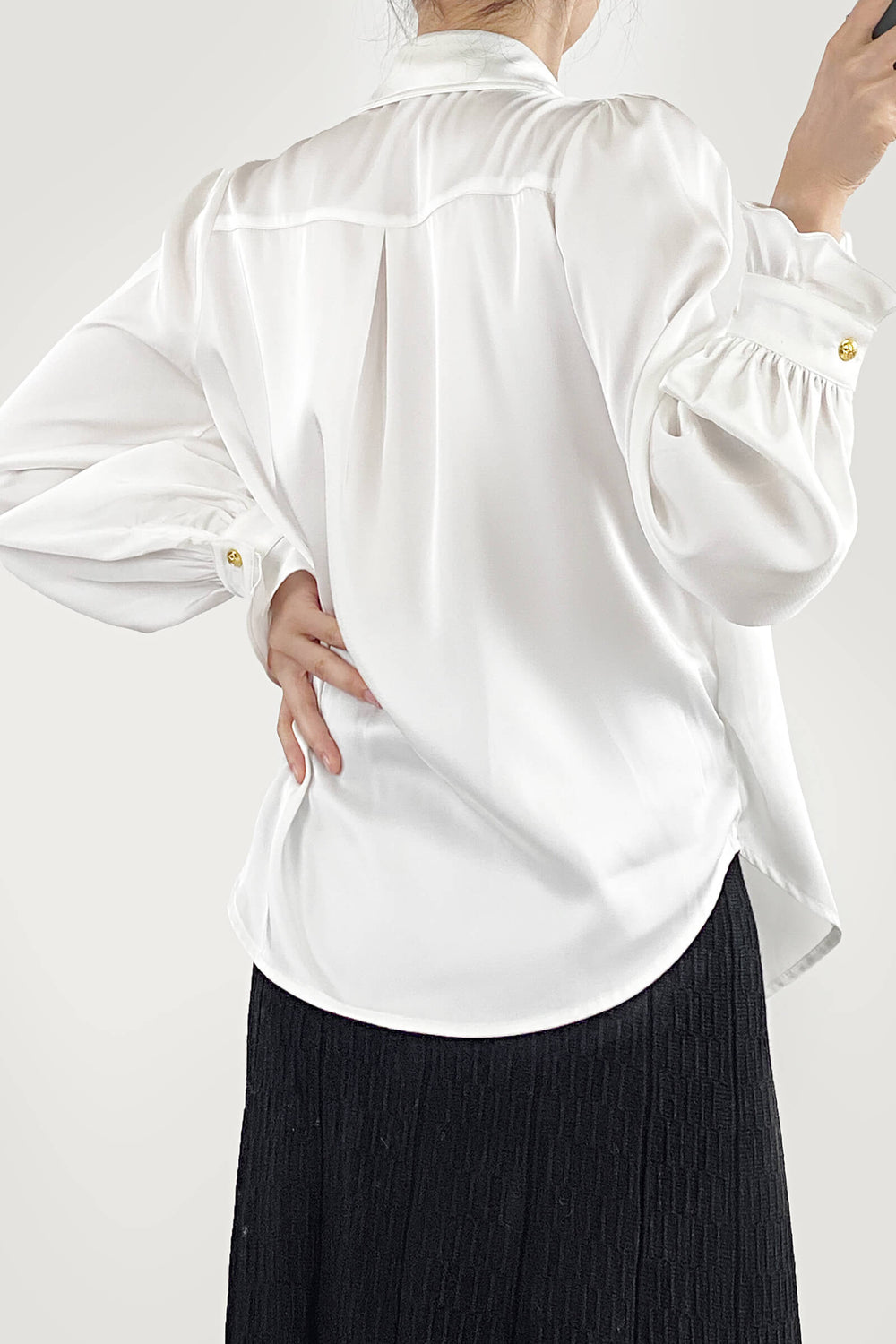 Your 9-5 staples just got better with this must-have blouse. Made from polyester and spandex. this versatile and timeless style features a collared neckline with a delicate pleated panel detail. long cuffed sleeves and a regular fit. Perfect to wear in the office or out. you can style this piece with almost any bottom.