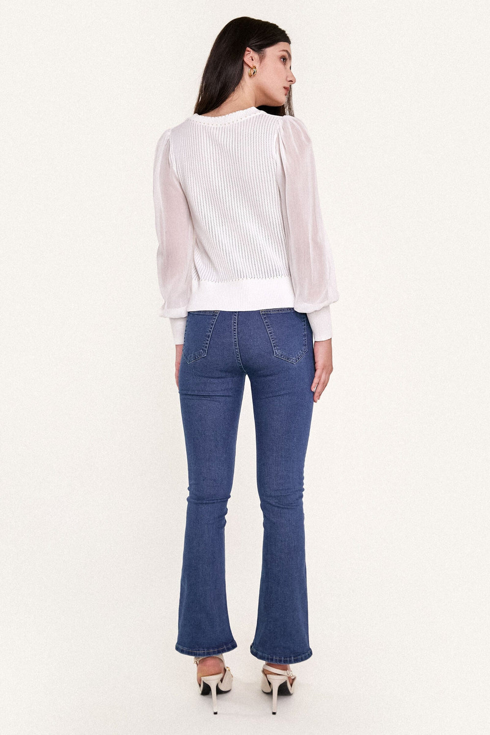 This cardigan is soft and breathable thanks to a breezy. pointelle-knit construction. It features sheer long sleeves. a V-neckline. a relaxed-fit bodice. front patch pockets. contrast trim. and ribbed trimming. Add your favorite jeans and a layered top. for a look that will be an easy fave!
