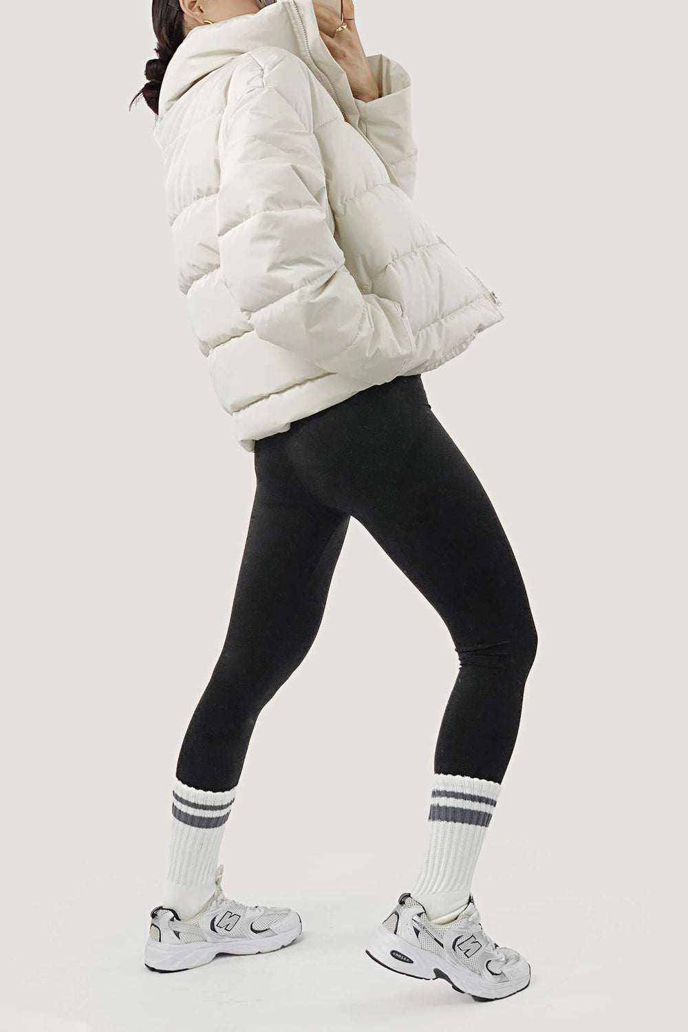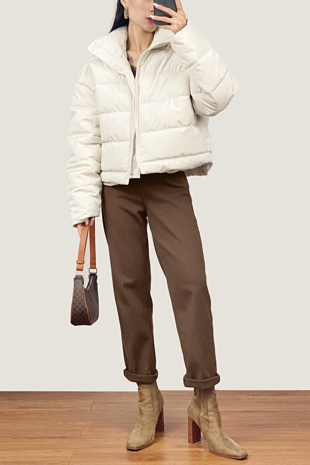 This cool puffer Jacket features long sleeves. a stand collar. and a zip up front closure for a warm fit.These puffer jackets are available in black. White! Made of 100% polyester.