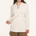 Stand out from the crowd with this blazer. It features long sleeves with buttons at cuffs. padded shoulders. peak lapels. a strap on the waist with two buttons. front welt pockets. a little back slit detail and lining on the inside.