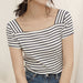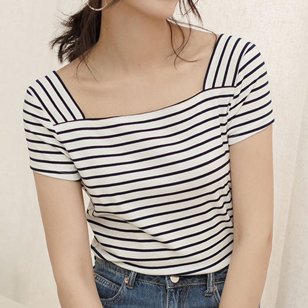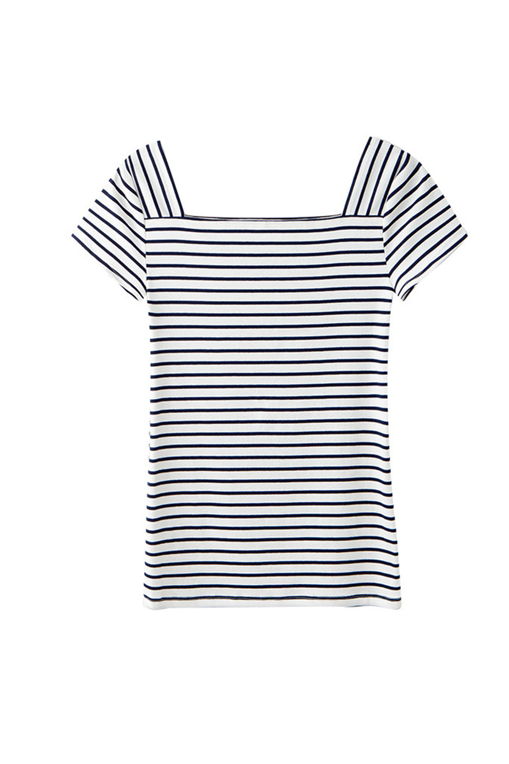 Cut from striped cotton-jersey. it has a relaxed fit with a square neck. Perfect for those casual hangs with the girls and more. this baby looks good with denim jeans. shorts and everything in between!