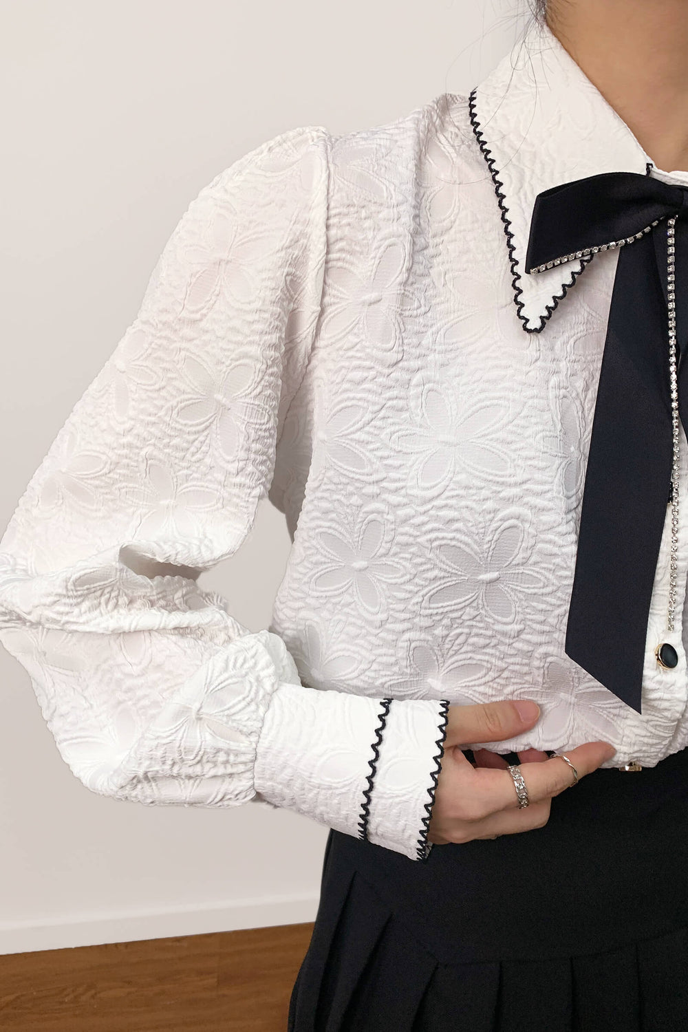 This textured shirt features features long balloon sleeves with fitted cuffs and a roomy but not oversized fit. It's a transeasonal piece that can be worn unbuttoned in the warmer months or paired with any winter staple. Add denim for a casual look or go dressy with a mini skirt and heels!
