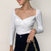 This sweater is knitted with stretch for a close. figure-hugging fit. It's detailed with a twisted front and fitted long sleeves. The sweetheart neckline will elegantly frame your favorite necklace.